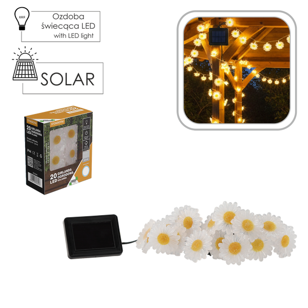 GARDEN SOLAR GARLAND 2 + 3.8 M DAISIES 20 WARM WHITE LEDs *6048