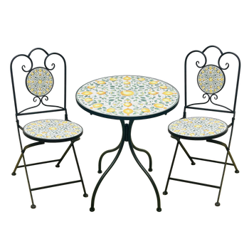 METAL MOSAIC GARDEN FURNITURE SET "LEMONIA" TABLE + 2 CHAIRS