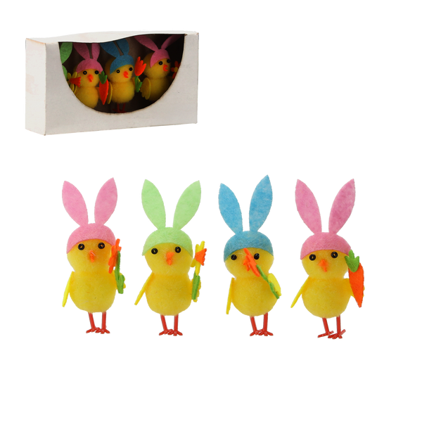 SET OF 4 EASTER DECORATIONS - CHICKS WITH EARS 12 x 3,5 x 7 CM DESIGN MIX