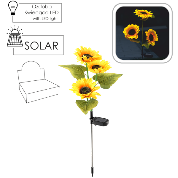 SOLAR LAMP H 70 CM SUNFLOWER 30 LED WARM WHITE DISPLAY=12PCS