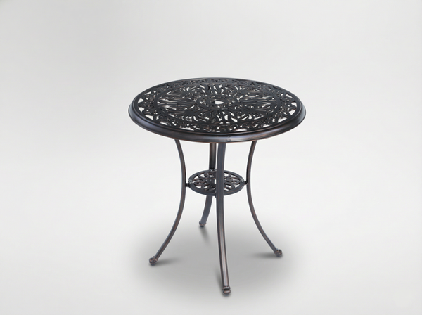 - Okrągły stół ogrodowy Danbury z aluminium w kolorze antycznego brązu. Styl antyczny, ażurowy blat, pełne odlewy aluminium, malowanie proszkowe. Odporny na warunki atmosferyczne, idealny do ogrodu i na taras.