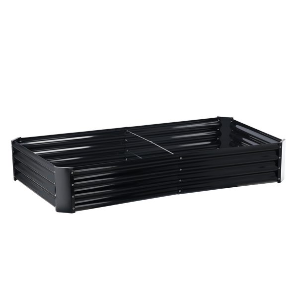 The bed is made of galvanized steel and powder-coated, ensuring durability and resistance to weather conditions.