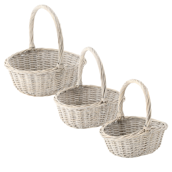 ZESTAW 3 KOSZYKÓW RATTANOWYCH Z RĄCZKĄ – JASNY SZARY