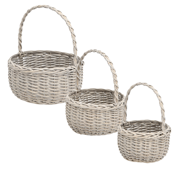 ZESTAW 3 KOSZYKÓW RATTANOWYCH Z RĄCZKĄ – SZARY
