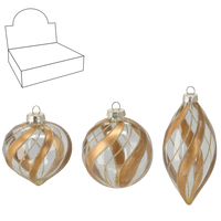 SKLENĚNÁ OZDOBA - PRŮSVITNÁ S OZDOBAMI MIX VZORŮ disp=12ks *4884
