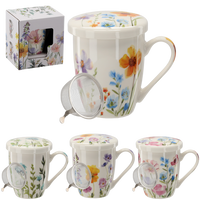 PORCELAIN MUG WITH INFUSER AND LID 340 ML MIX OF FLOWER PATTERNS