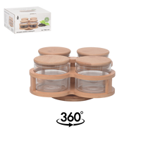 SET OF 4 GLASS JARS 400 ML WITH WOODEN STAND AND LID
