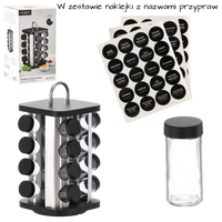 PRZYPRAWNIK KWADRATOWY 16,5 x 16,5 x 33,5 CM Z RĄCZKĄ 16 SŁOICZKÓW CZARNO-SREBRNY *9165