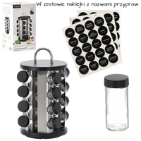PRZYPRAWNIK OKRĄGŁY 17,5 x 33 CM Z RĄCZKĄ 16 SŁOICZKÓW CZARNO-SREBRNY *9158
