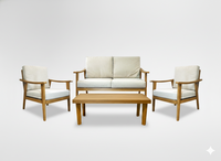 ZESTAW MEBLI OGRODOWYCH ALUMINIOWYCH TEAKOWYCH (SOFA + 2 FOTELE + STÓŁ + 2 TABORETY) ANTRACYT + SZARE PODUSZKI