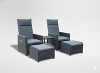 ZESTAW MEBLI OGRODOWYCH - ANTRACYT (2 ROZKŁADANE FOTELE, STOLIK, 2 PODNÓŻKI)