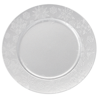 PODTALERZ OKRĄGŁY 33 x 33 x 2 CM ZE WZOREM ŚNIEŻYNEK SREBRNY opak=6 szt *8625