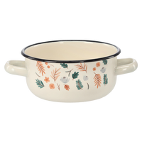 RONDEL EMALIOWANY Z DWOMA USZAMI 1,5 L 16 CM KREMOWY LIŚCIE *2327