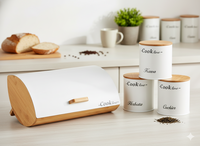 CHLEBAK AGLIO - BAMBUSOWY Z POKRYWĄ METALOWĄ 36,5 x 25 x 13 CM BIAŁY MAT + 3 POJEMNIKI 11,5x11,5x12 CM