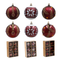 KPL. 6 BOMBEK CHOINKOWYCH BURGUNDOWE 8 CM MIX WZORÓW *5843