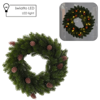 WIENIEC ŚWIĄTECZNY LED 40 CM 40 L ZIELONY ZE ŚWIECĄCYMI SZYSZKAMI NA BATERIE *9669
