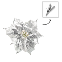 SZTUCZNY KWIAT - GWIAZDA BETLEJEMSKA 25 CM NA KLIPSIE SREBRNY opak=12 szt *3290
