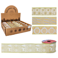 ŚWIĄTECZNA WSTĄŻKA DEKORACYJNA 5 CM x 2,7 M ZŁOTA MIX WZORÓW opak=20szt *9805