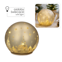 OZDOBA BOŻONARODZENIOWA BOMBKA 15 X 15 X 17 CM Z POZYTYWKĄ LED - BIAŁA - RENIFER *3504