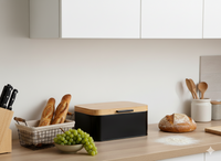 CHLEBAK LAURO - METALOWY Z BAMBUSOWĄ POKRYWĄ 30 x 23 x 18 x 15 CM CZARNY