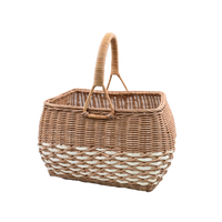 KOSZYK RATTANOWY 26 x 19 x 9/11/34 CM Z UCHWYTEM - BIAŁY Z NATURALNYM *8871