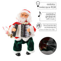 MIKOŁAJ Z AKORDEONEM - GRAJĄCY LED 40,5 CM *6529