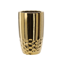 OSŁONKA CERAMICZNA NA DONICZKĘ 22 x 22 x 32,5 CM ZŁOTA PRĄŻKOWANA *3550