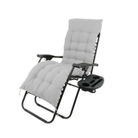 LEŻAK OGRODOWY SKŁADANY Z PODSTAWKĄ, KIESZONKĄ CZARNY Z SZARĄ PODUSZKĄ *9979