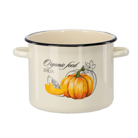 RONDEL EMALIOWANY Z RĄCZKĄ 1,5 L 16 CM KREMOWY LIŚCIE *6154