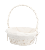 KOSZYK RATTANOWY 26 x 26 x 11/30 CM Z RĄCZKĄ I MATERIAŁEM - BIAŁY *7183