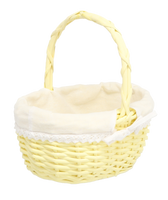 KOSZYK RATTANOWY 27 x 21 x 12/28 CM Z RĄCZKĄ I MATERIAŁEM - ŻÓŁTY *6971
