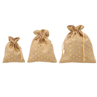 KPL 3 WORKÓW JUTOWYCH 30x25 / 25x20 / 20x15 CM ZŁOTE KROPKI opak=5kpl *3840