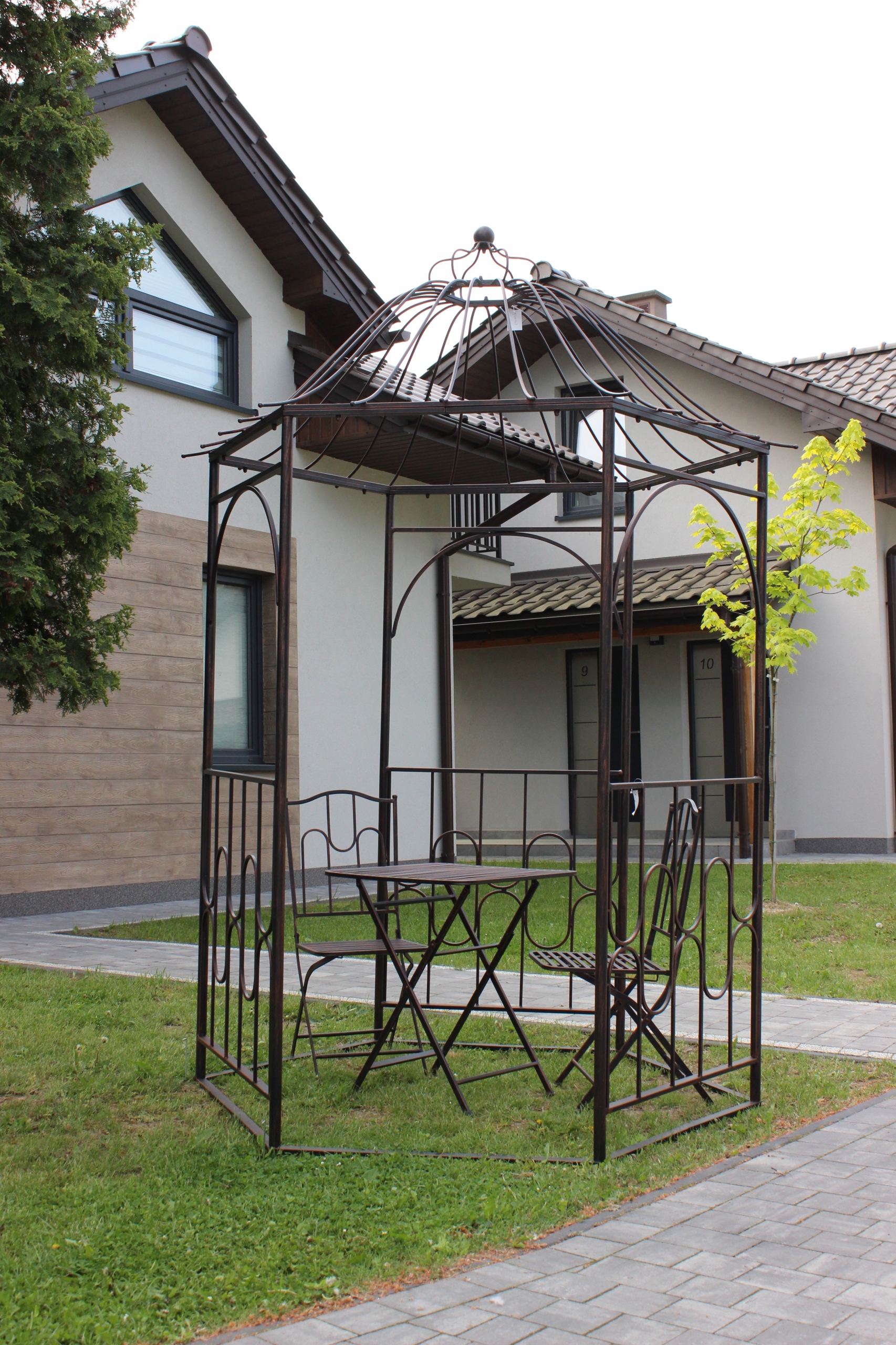 Altana ogrodowa o wymiarach 180 x 156 x 275 cm w kolorze antycznego brązu to elegancka i trwała konstrukcja, idealna do ogrodu, na taras czy do przestrzeni rekreacyjnej. Dzięki solidnej konstrukcji zapewnia stabilność i odporność na warunki atmosferyczne. Jest idealnym rozwiązaniem do stworzenia zacisznego miejsca na relaks, spotkania z rodziną i przyjaciółmi. Wysoka jakość materiałów zapewnia długowieczność altany, a jej stylowy design pasuje do różnych stylów ogrodowych.