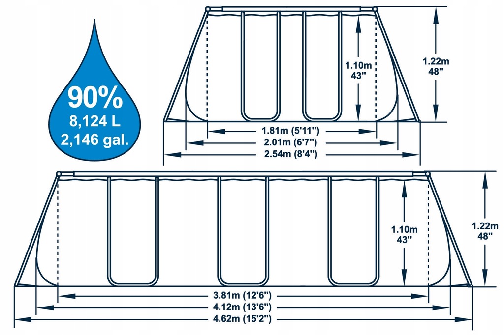 - Pojemność wody: 8 124 l (przy 90% napełnienia)