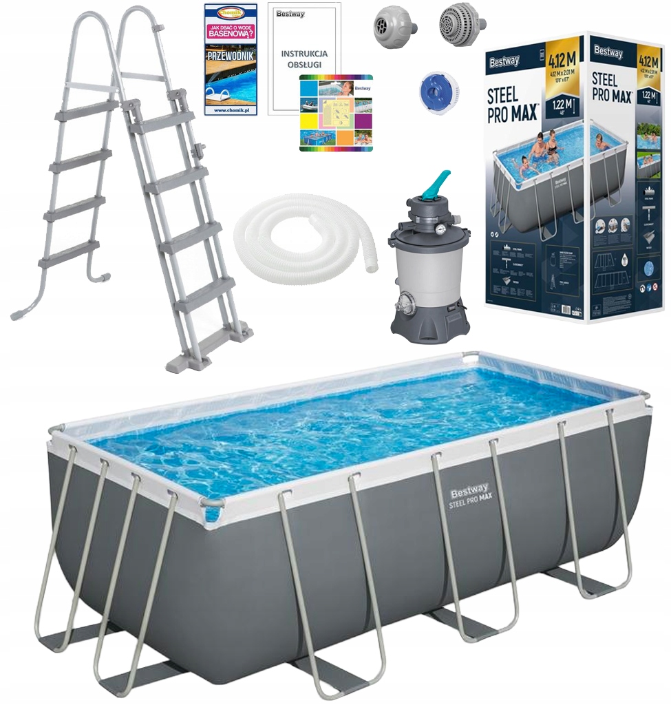BASEN STELAŻOWY 4,12 x 2,01 x 1,22 M (BASEN, POMPA PIASKOWA, DRABINKA, DOZOWNIK) *0258 *6288