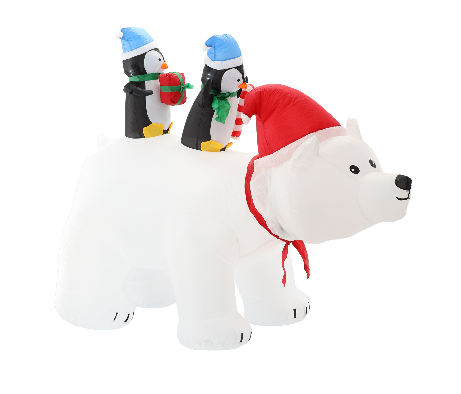 DMUCHANY NIEDŹWIEDŹ POLARNY Z PINGWINKAMI LED 200 CM 🐻‍❄️🐧🎄