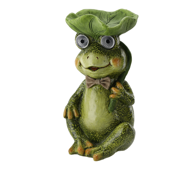 FIGURKA OGRODOWA - ŻABA KARMNIK ZE ŚWIECĄCYMI OCZAMI 21,5 x 20 x 35,5 CM LED *7218
