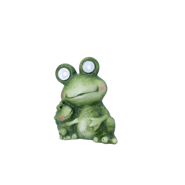 - Figurka żaby ze świecącymi oczami, z mniejszą żaba na sobie