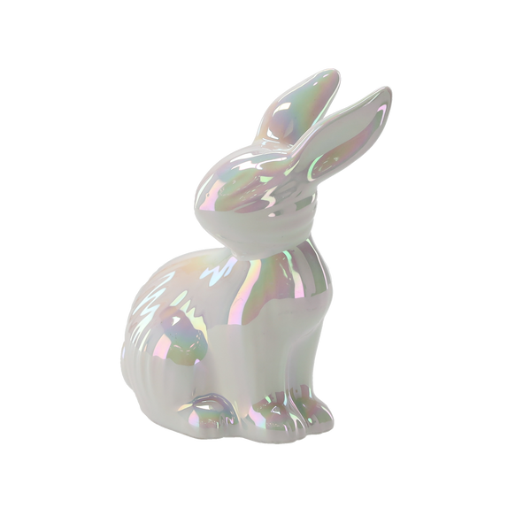 FIGURKA WIELKANOCNA - ZAJĄCZEK CERAMICZNY PERŁOWOBIAŁY 11 x 7,8 x 13,5 CM opak=6szt *6747