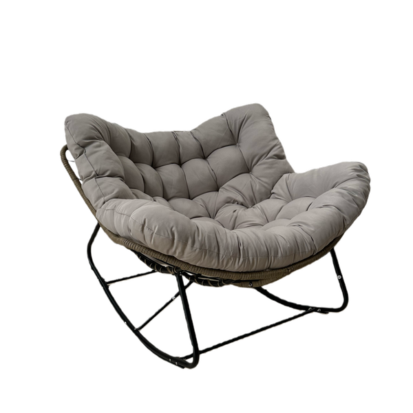Fotel bujany "SVINGA" – brązowy rattan i szare poduszki 🌰🌫️