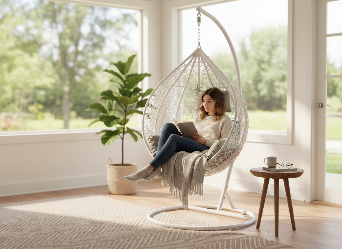 Marzysz o relaksie na świeżym powietrzu lub w domowym zaciszu? Ten elegancki fotel wiszący zapewni Ci wyjątkowy komfort i styl, gdziekolwiek go postawisz.