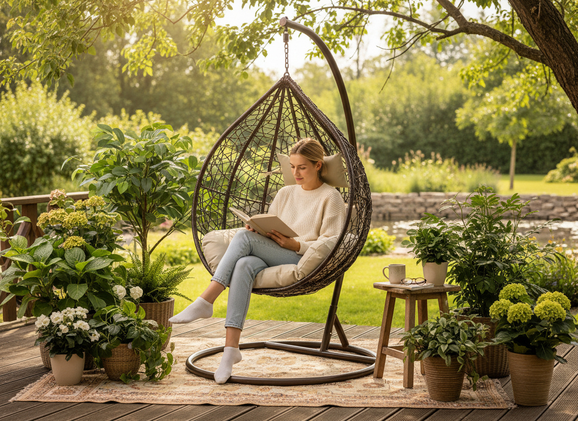 Szukasz stylowego miejsca do relaksu? Ten wiszący fotel w odcieniach ziemi to perfekcyjne połączenie natury, komfortu i elegancji. Sprawdzi się zarówno na tarasie, w ogrodzie, jak i w domowym zaciszu.
