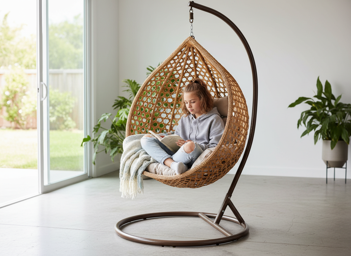 Ten przestronny fotel wiszący w rozmiarze L to idealne miejsce, by zanurzyć się w chwili ciszy i spokoju. Zapewnia wyjątkowy komfort i świetnie prezentuje się na tarasie, w ogrodzie czy nawet we wnętrzu domu.
