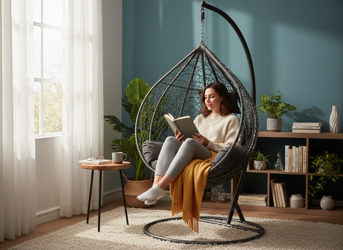 Jeśli cenisz minimalizm, trwałość i wygodę – ten fotel wiszący spełni Twoje oczekiwania. Stylowy ciemnoszary kolor doda charakteru każdemu miejscu wypoczynku i sprawi, że poczujesz się jak w nowoczesnym SPA 🖤