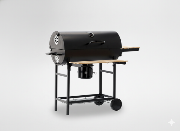 - Funkcjonalny grill na kółkach z drewnianymi półkami to idealny wybór do ogrodu i na taras. Solidna konstrukcja, chromowany ruszt, termometr w pokrywie i regulowana wentylacja zapewniają wygodne i precyzyjne grillowanie.