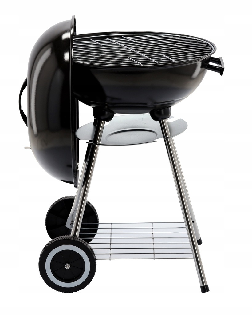 - Klasyczny grill węglowy z emaliowanym paleniskiem i pokrywą 43,5 cm oraz chromowanym rusztem 41 cm. Wyposażony w popielnik, praktyczną półkę na węgiel i kółka, idealny na rodzinne spotkania i letnie grillowanie w ogrodzie.