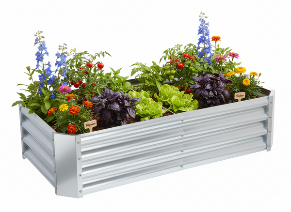 - Grządka warzywno-kwiatowa metalowa 120x60x30 cm z ocynkowanej stali. Trwała, odporna na warunki atmosferyczne i łatwa w montażu. Idealna do uprawy warzyw, ziół i kwiatów w każdym ogrodzie.