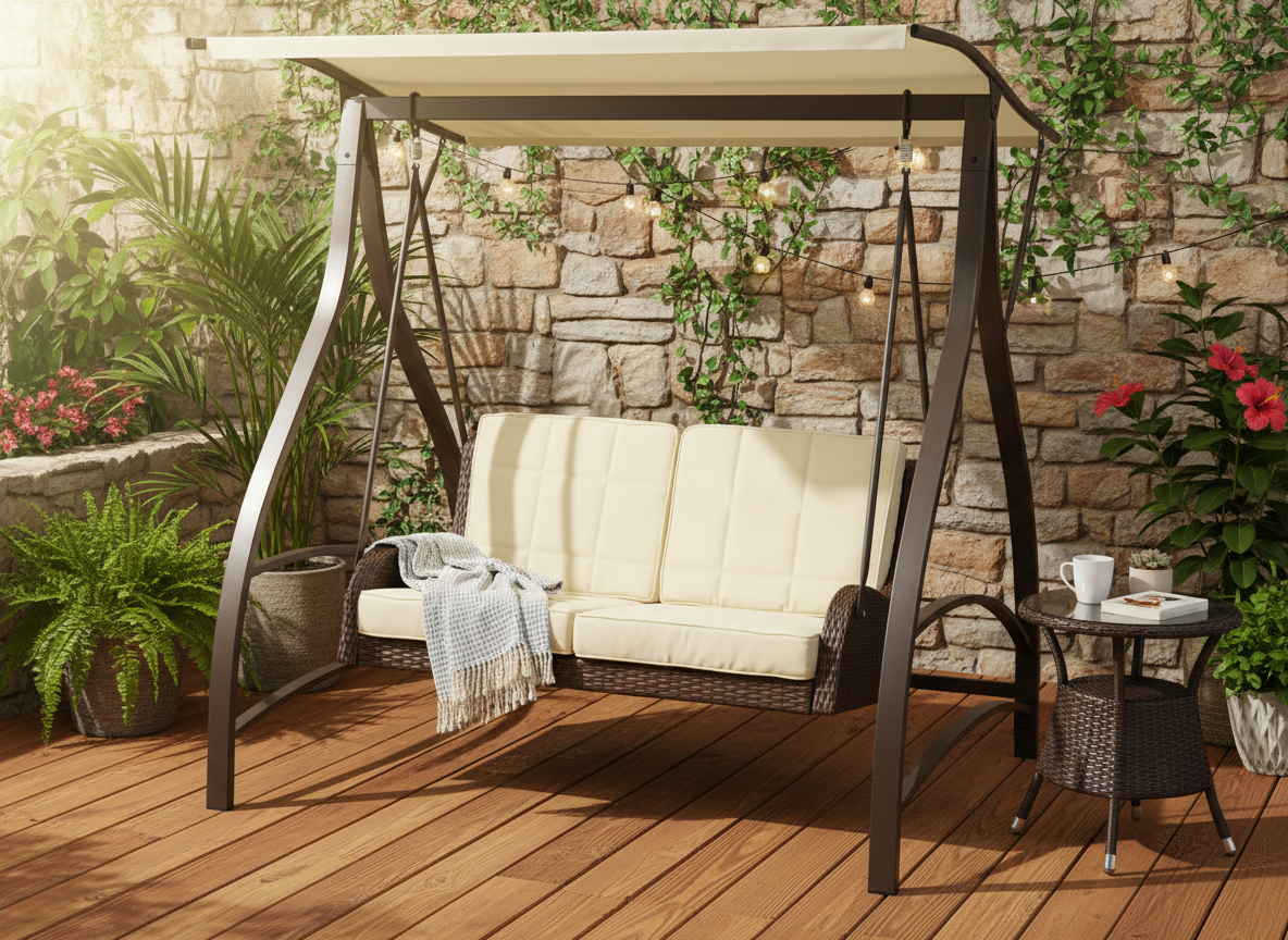 Wprowadź luksus do swojego ogrodu dzięki huśtawce z technorattanu! To połączenie elegancji, trwałości i komfortu – idealna do relaksu wśród zieleni lub na tarasie. Naturalny wygląd i nowoczesna konstrukcja zachwycą każdego miłośnika stylowego wypoczynku.