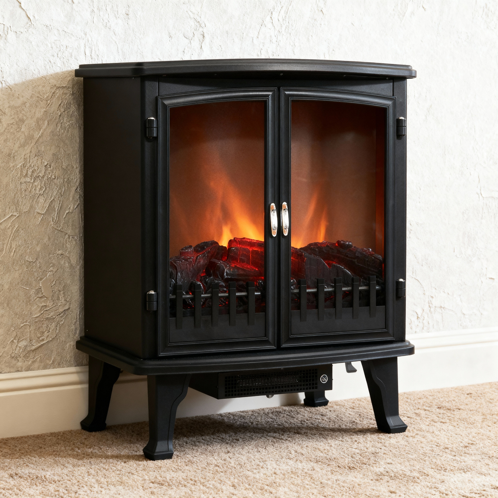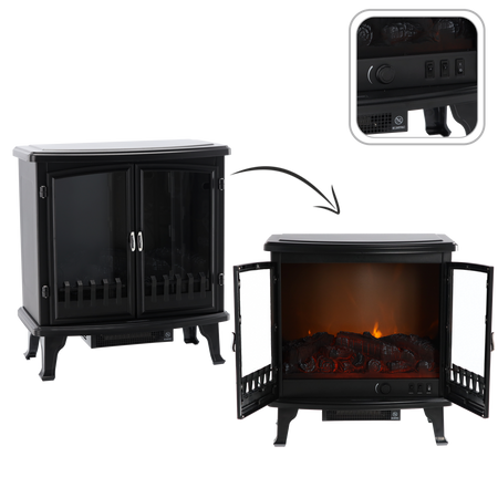 Realistyczna imitacja płomieni, eleganckie przeszklone drzwiczki i dwa poziomy grzania sprawiają, że kominek ten jest nie tylko funkcjonalny, ale i stylowy 🖤 Doskonały do salonu, sypialni czy biura!