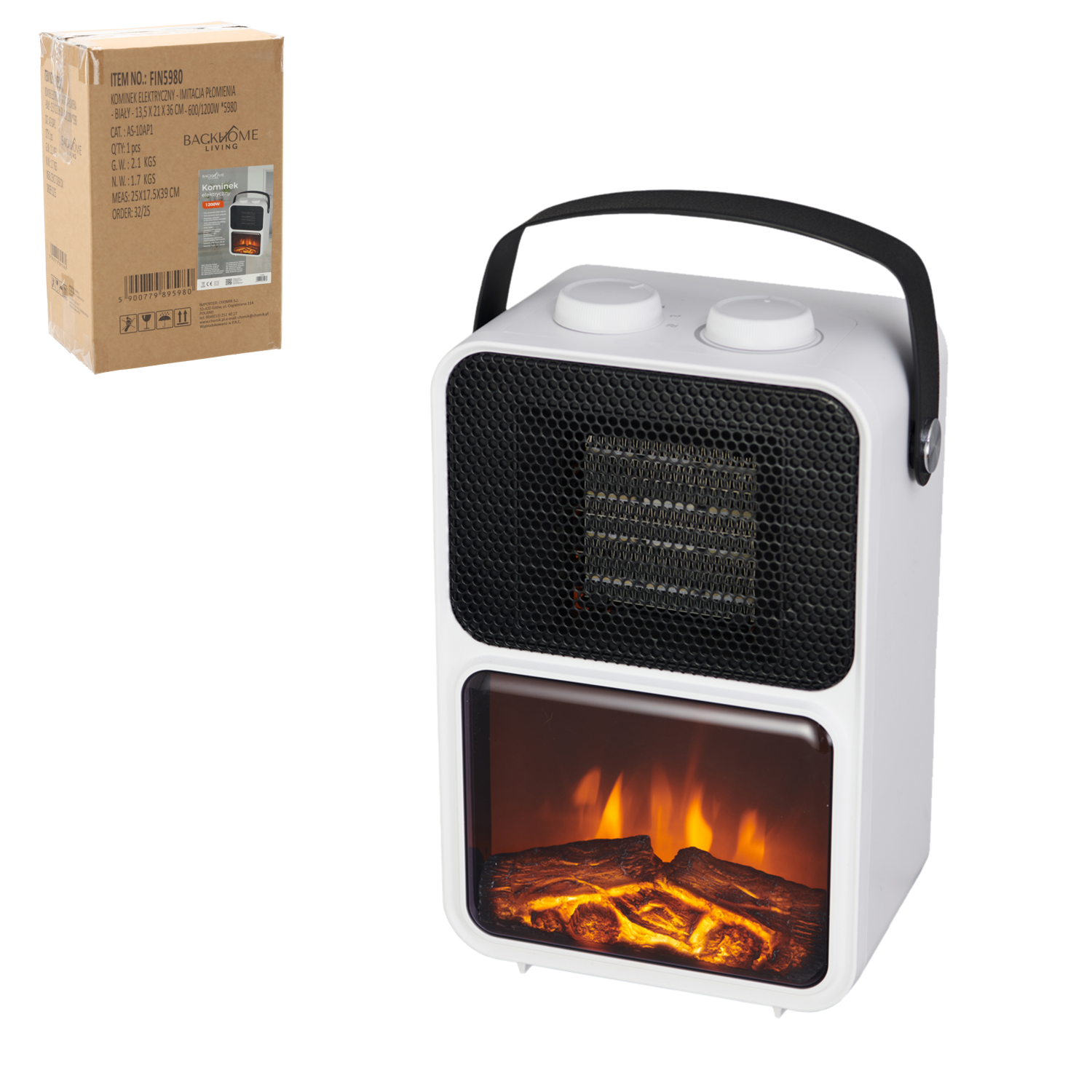 KOMINEK ELEKTRYCZNY - IMITACJA PŁOMIENIA - BIAŁY - 13,5 x 21 x 36 CM - 600/1200W